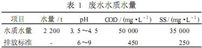 該企業(yè)廢水主要來自于粗餾塔酒糟廢水、精餾塔余餾水等廢水,廢水水質(zhì)和水量如表1所示。設(shè)計出水水質(zhì)須達(dá)到當(dāng)?shù)爻鞘形鬯幚韽S接管標(biāo)準(zhǔn)。